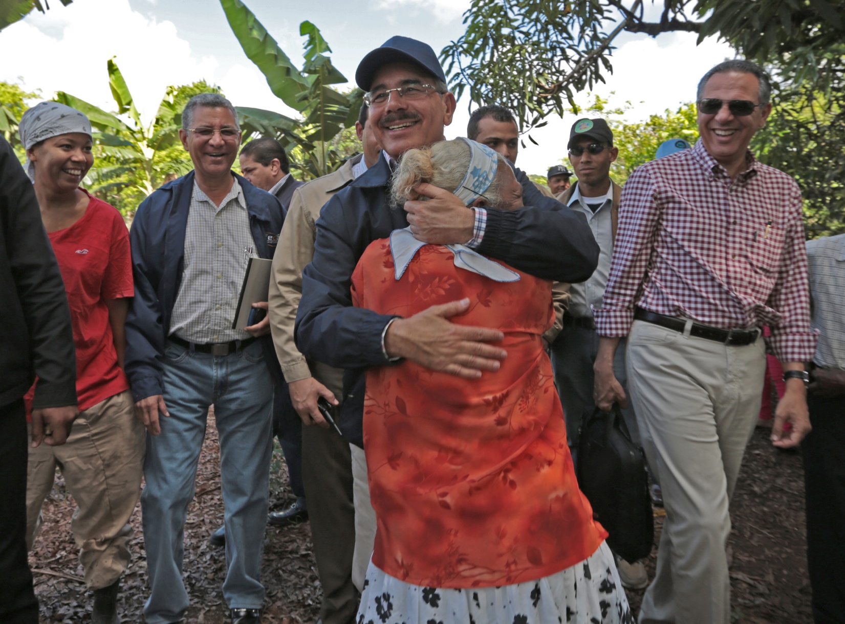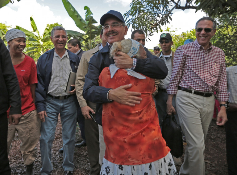 El presidente de la República, Danilo Medina saluda moradores de la zona que salieron a su encuentro.