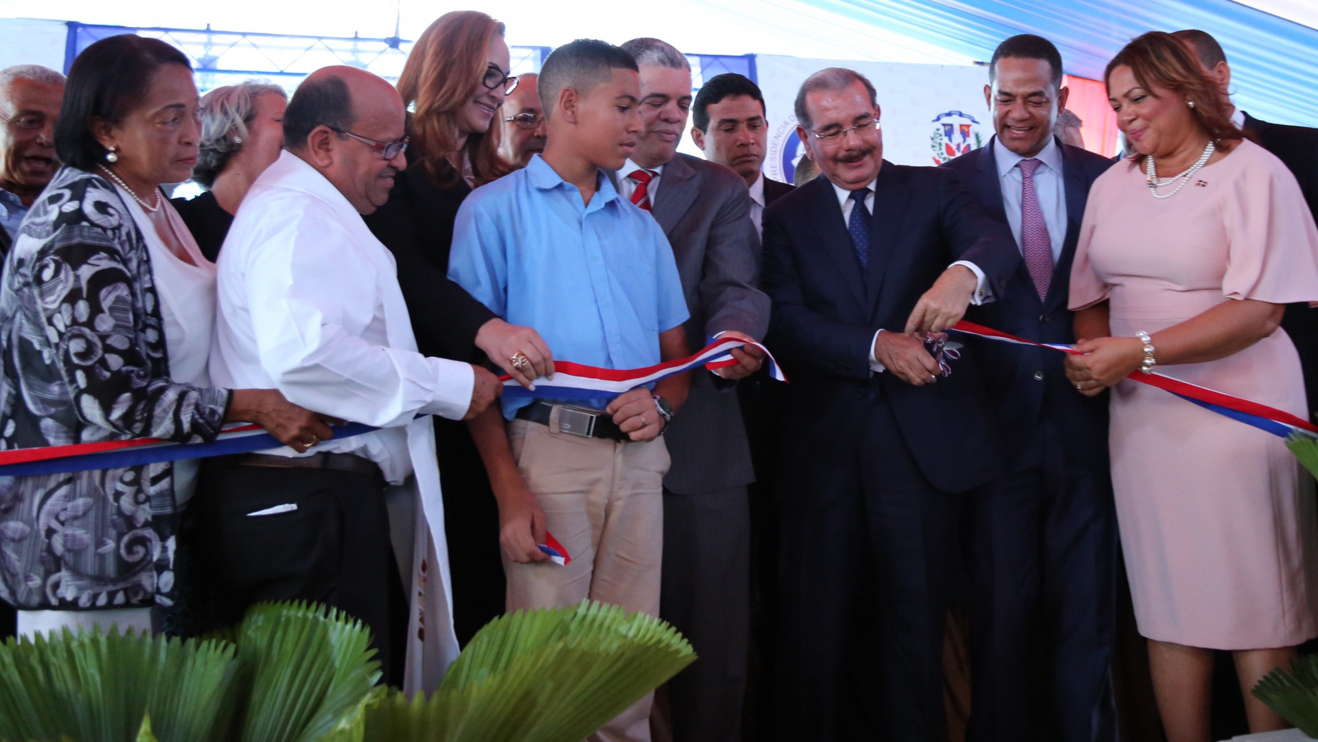 El presidente Danilo Medina inauguró hoy en la provincia de Santiago, la escuela básica Plinio Rafael Taveras Inoa, ubicada en el barrio La Altagracia y que posee 24 aulas; el liceo Hermana Josefina Serrano, en el sector La Otra Banda, de 29 espacios docentes y el centro Elena Amadiz, en Licey al Medio, de siete aulas.