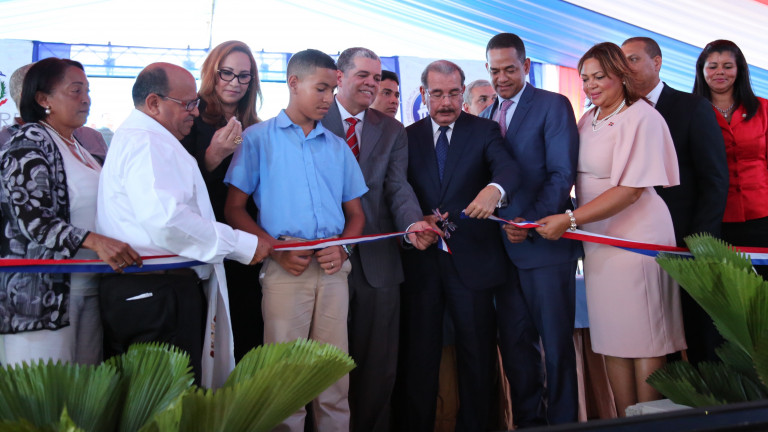 El presidente Danilo Medina inauguró hoy en la provincia de Santiago, la escuela básica Plinio Rafael Taveras Inoa, ubicada en el barrio La Altagracia y que posee 24 aulas; el liceo Hermana Josefina Serrano, en el sector La Otra Banda, de 29 espacios docentes y el centro Elena Amadiz, en Licey al Medio, de siete aulas.