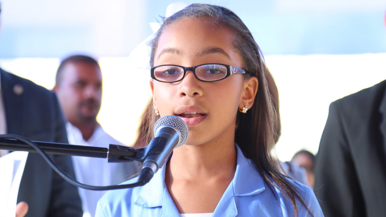 Joleidy Altagracia Núñez Carela, estudiante de séptimo de básica, dio las gracias al presidente Danilo Medina por su nueva escuela.