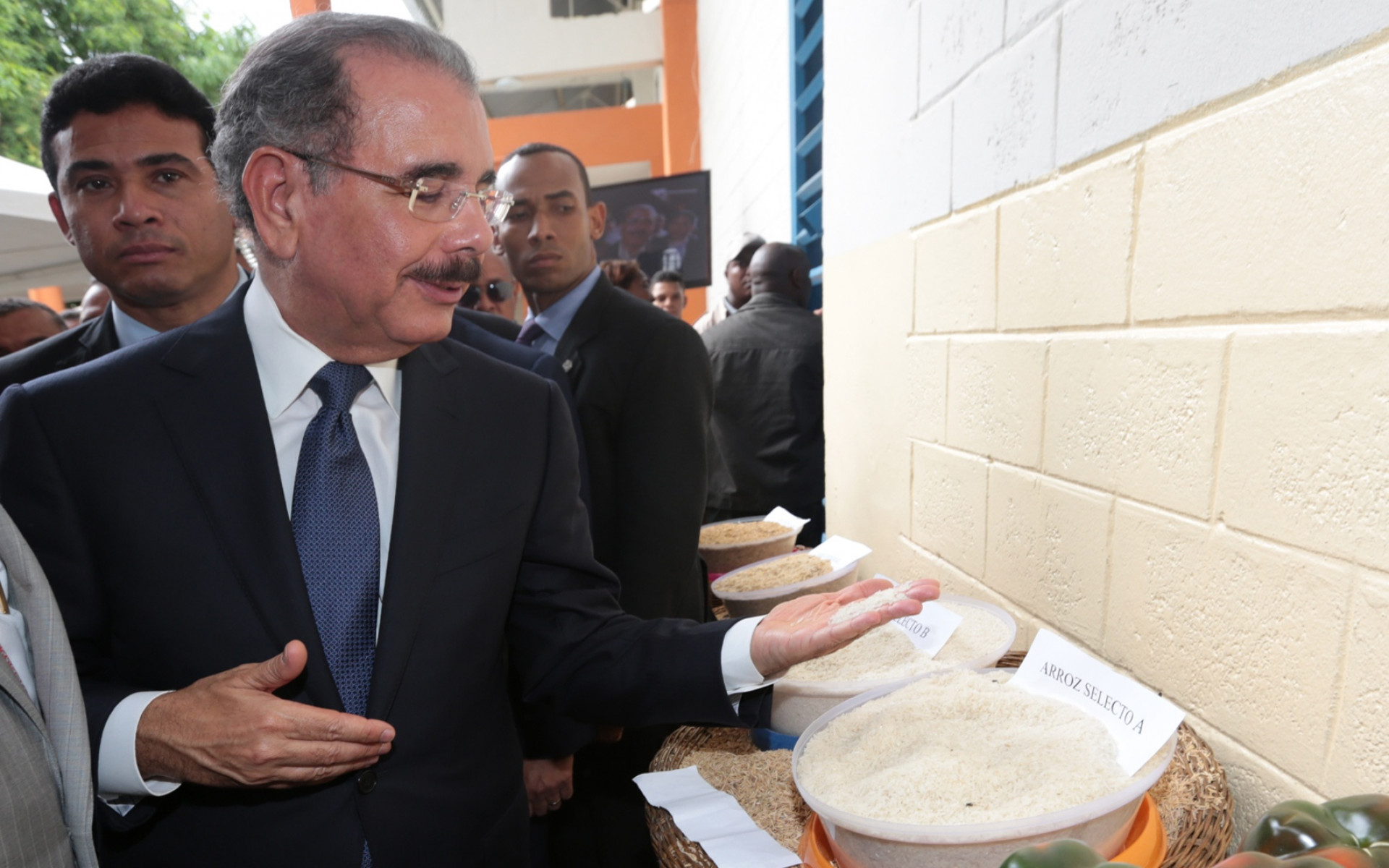 El presidente Medina observa muestra de arroz producido en la zona, donde líderes agropecuarios aseguraron que ciertamente, en el sector se está haciendo lo que nunca se había hecho.