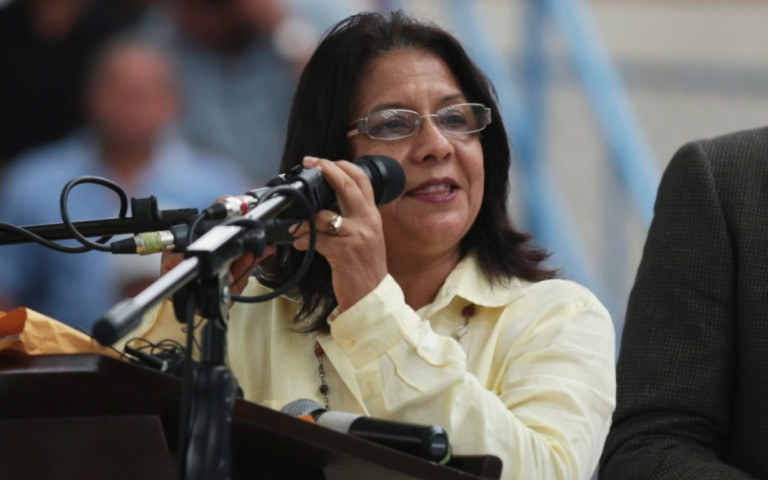 Manuela A. Rodríguez de Shiguetome, al momento de agradecer el reconocimiento recibio por su entrega al trabajo asociativo en ayuda de los productores pecuarios, durante las actividades celebradas el Día del Agricultor, en Moca.