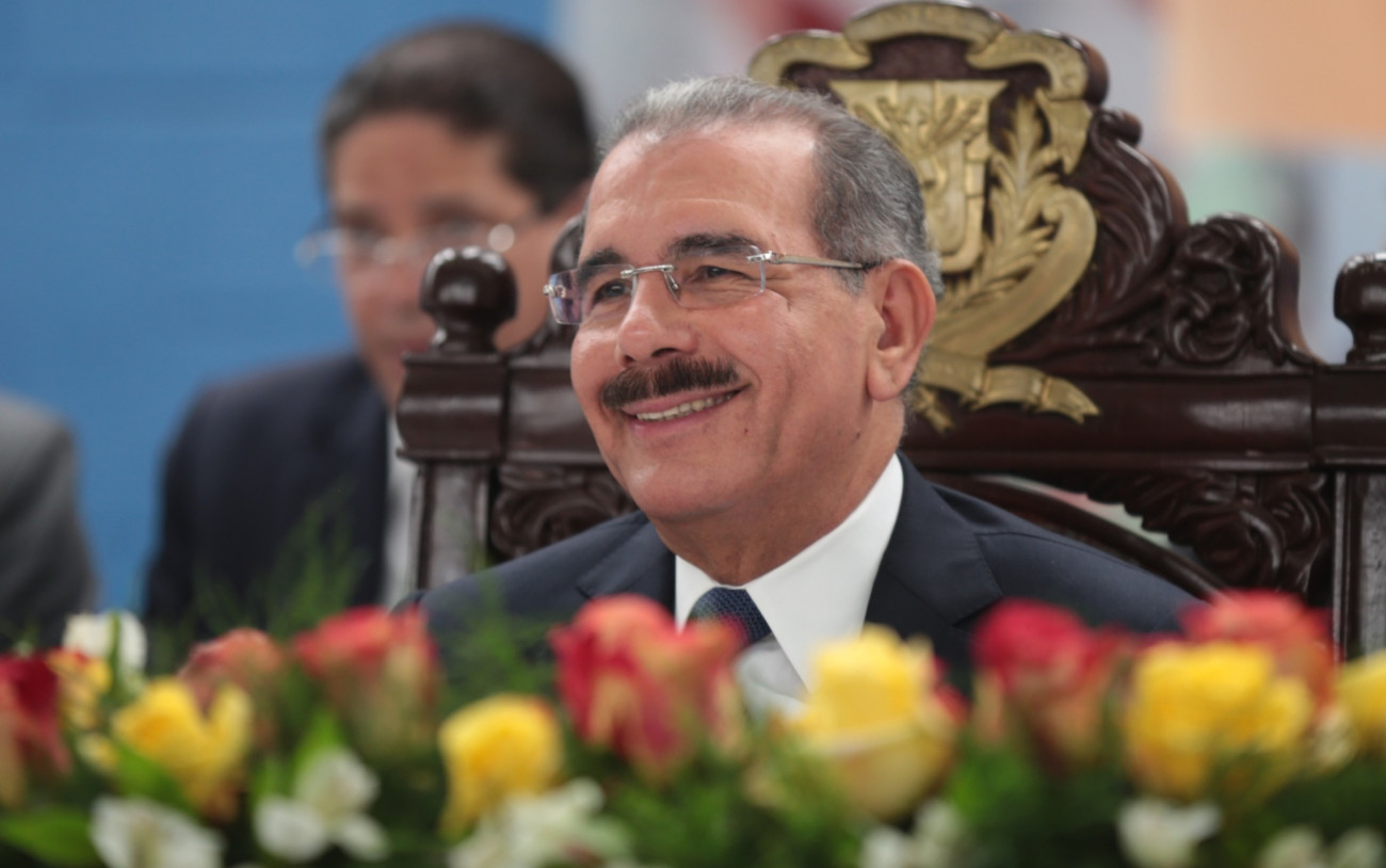 El presidente de la República, Danilo Medina, sonríe durante el acto de celebración del Día Nacional del Agricultor, en la ciudad Moca de la provincia Espaillat.