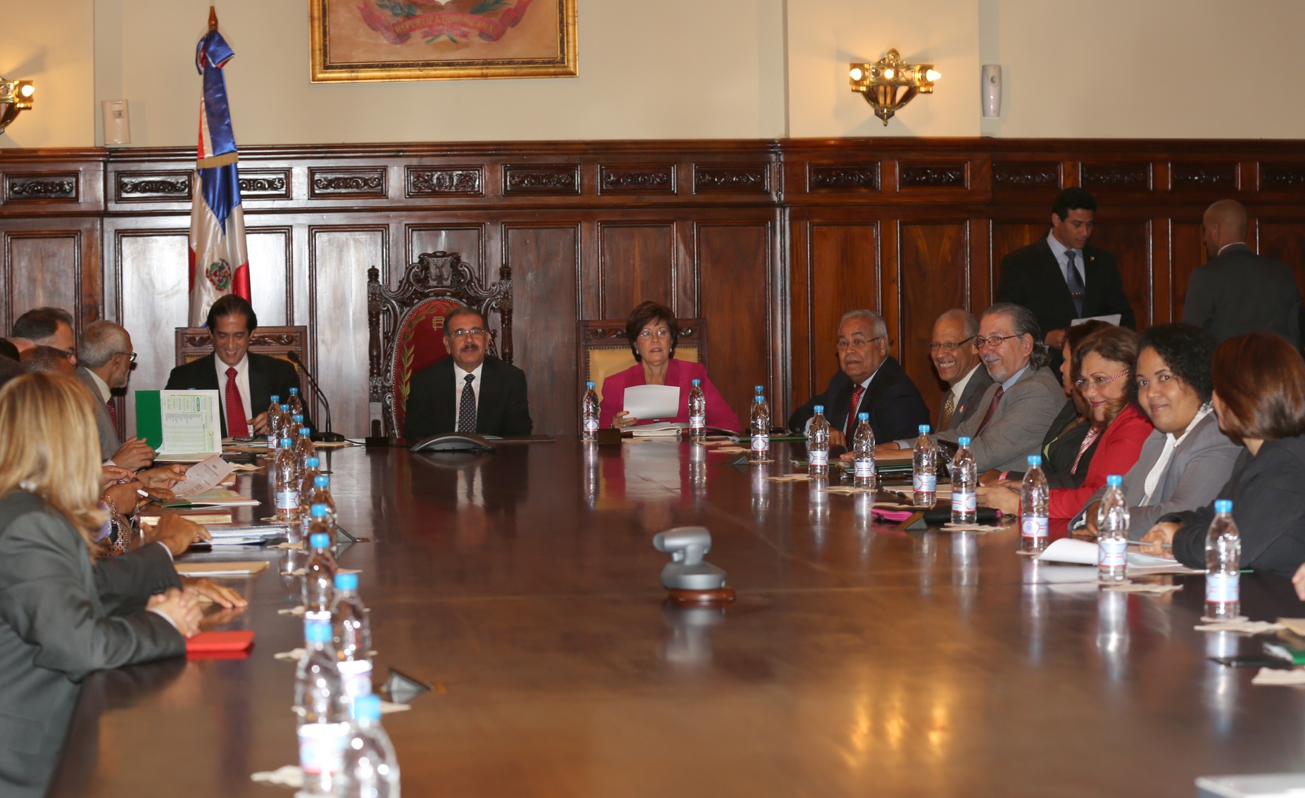 El presidente de la República, licenciado Danilo Medina, junto al equipo técnico del Plan Nacional de Alfabetización “Quisqueya Aprende Contigo”, reunidos en el Palacio Presidencial, para presentar a la Junta Nacional de Alfabetización los avances alcanzados por el programa hasta la fecha.