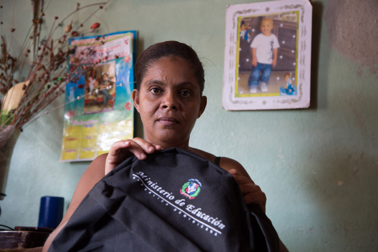 Blanca Rosa Rodríguez, ama de casa del barrio, también pueden trabajar desde su casa como empleada de la fábrica de mochilas.