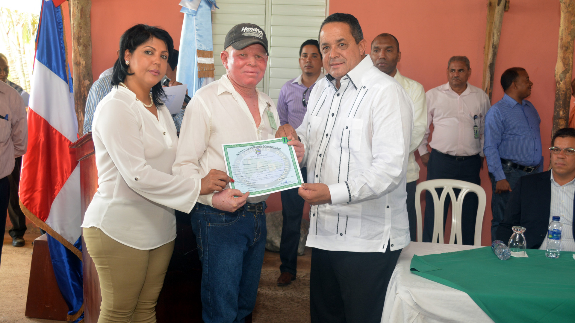 Cumpliendo una promesa hecha por el presidente Danilo Medina durante una visita sorpresa realizada recientemente a El Duey, el director general del IAD, Emilio Toribio Olivo, entregó títulos provisionales a los productores y les recordó que “estos terrenos que hoy reciben son un bien de familia, no los vendan, no los abandonen”.