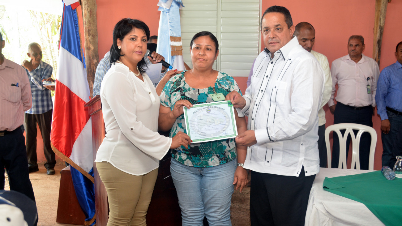 Un total de 85 familias de la comunidad El Duey, en Cotuí, recibieron más de 7 mil 260 tareas que ocupaban por 25 y 30 años, terrenos estos que hoy se incorporan a la producción agrícola, mediante la creación del asentamiento AC-594, por parte del IAD.