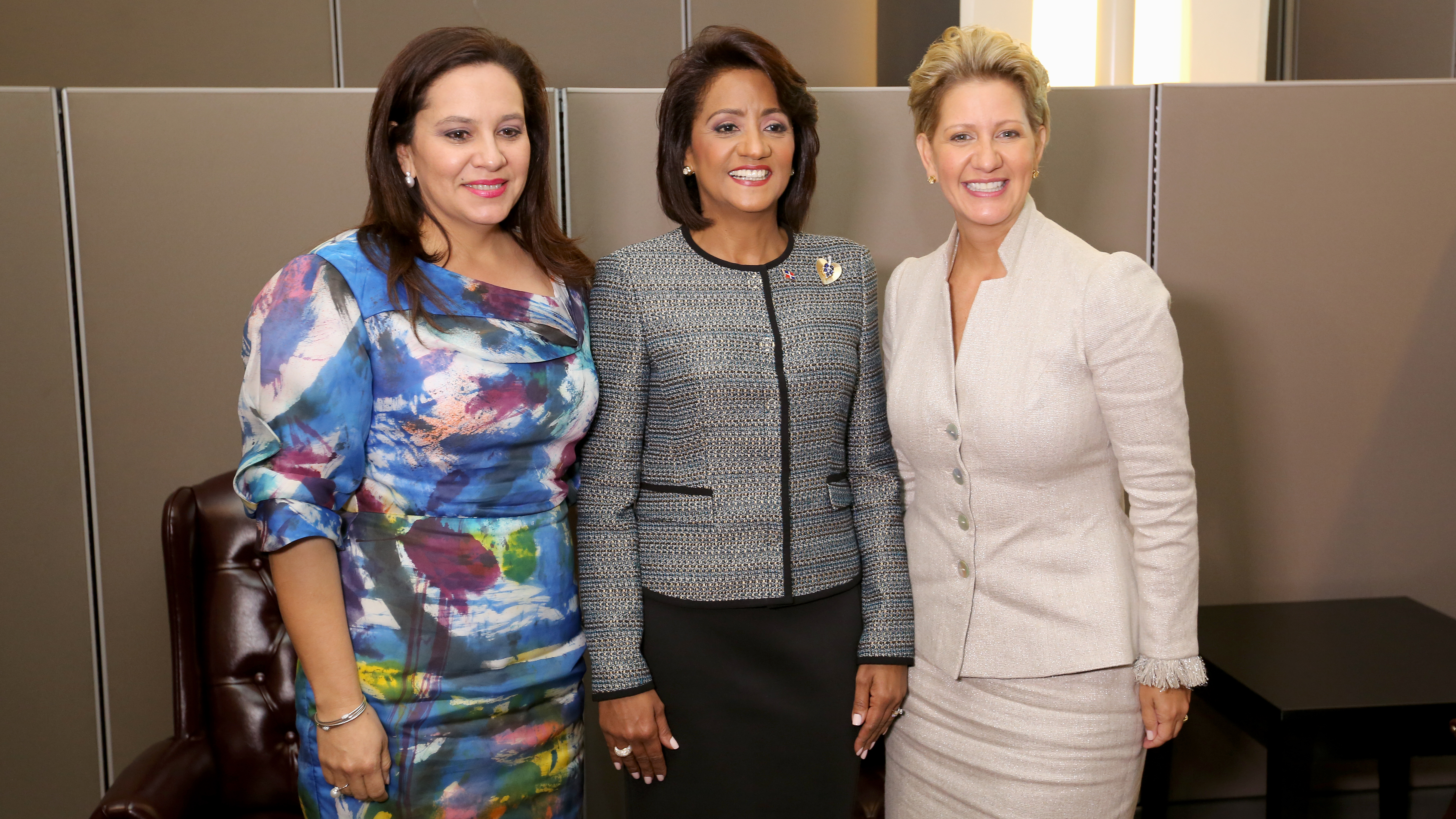 Señoras Ana García de Hernández, primera dama de la República de Honduras; Cándida Montilla de Medina, de República Dominicana, y Lorena Castillo de Valera, de la República de Panamá, durante encuentro bilateral celebrado en la sede principal de ONU.