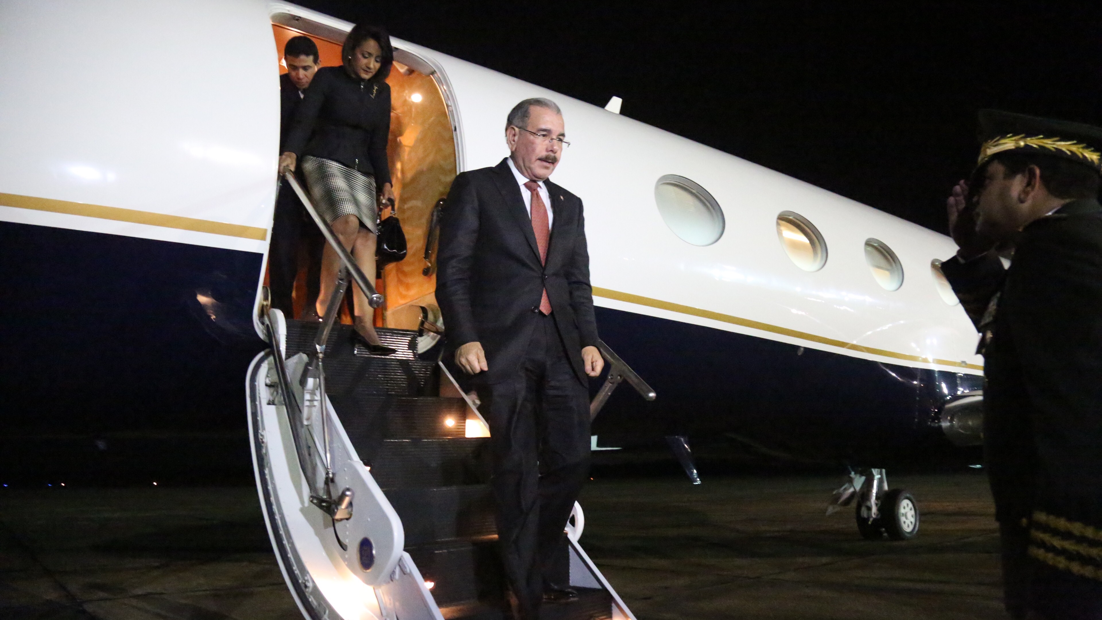 La llegada del jefe de Estado y de la reducida comitiva que le acompañó se produjo por la Base Aérea de San Isidro, a las 10:12 de la noche de este martes. Foto: Presidencia República Dominicana Nota de prensa: presidencia.gov.do/noticias/tras-intensa-jornada-de-traba...