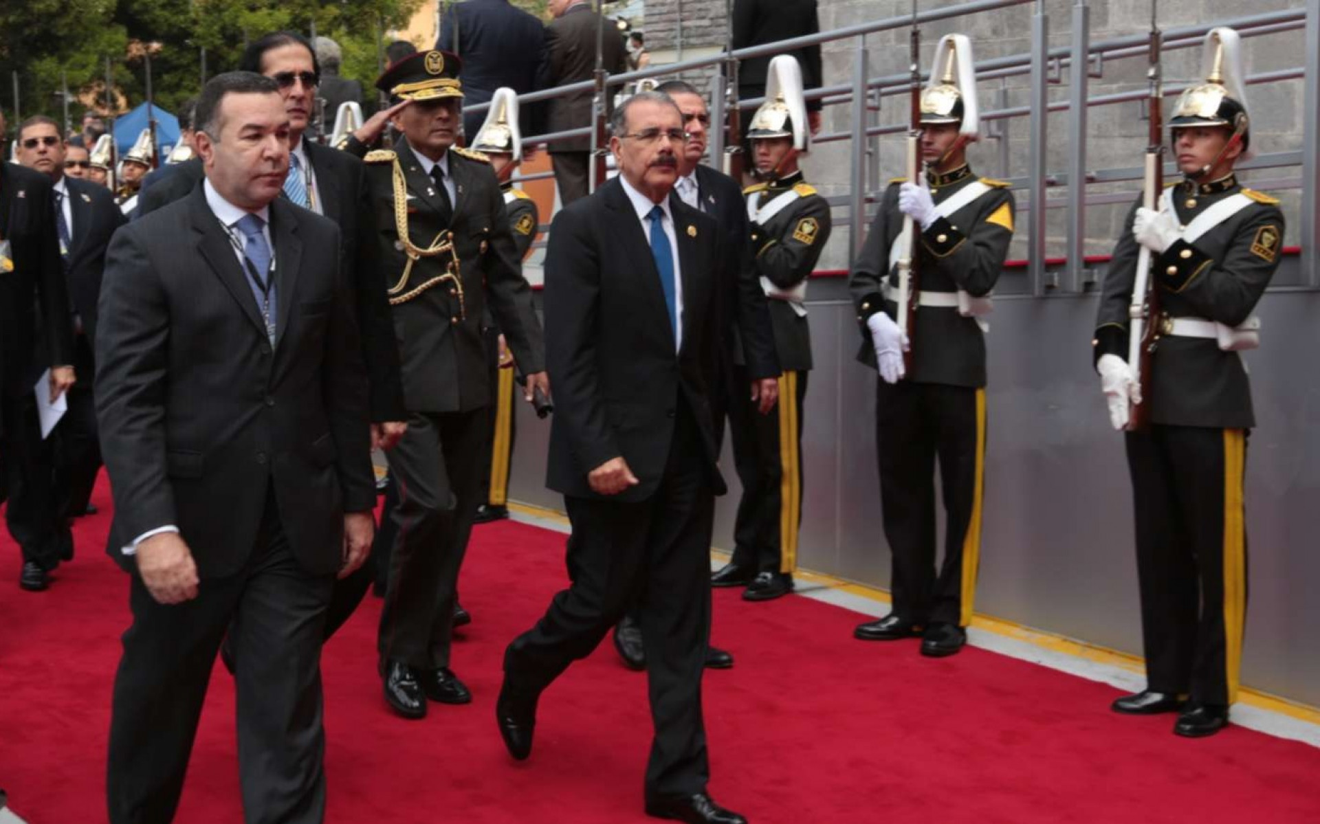 El mandatario dominicano, Danilo Medina, se dirige al salón de la Asamblea Nacional de Ecuador, en compañía de varios funcionarios de su Gobierno, donde asiste a los actos de toma de posesión del reelecto presidente de esa nación sudamericana, Rafael Correa. presidencia.gob.do/comunicados/danilo-medina-llega-quito-...