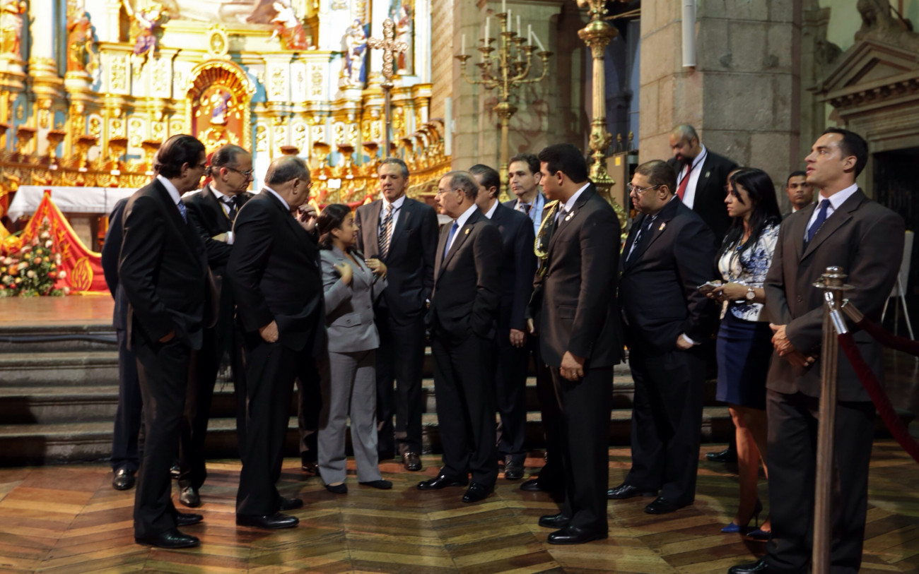 El mandatario Danilo Medina, luego de participar en los actos oficiales de juramentación del reelecto presidente de Ecuador, Rafael Correa, visitó en compañía de su comitiva la capilla de la Catedral Metropolitana de Quito, en el Centro Histórico de la capital ecuatoriana.
