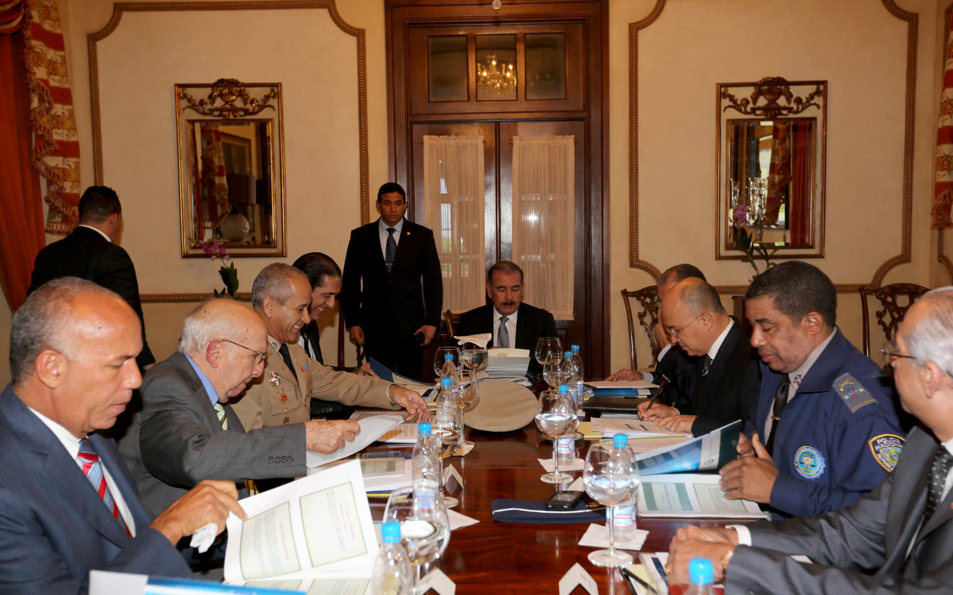 El presidente Danilo Medina encabeza la reunión, en el Palacio Nacional, con los miembros del Consejo Nacional de Seguridad Ciudadana, organismo creado mediante el Decreto 119-13, y que tiene como finalidad coordinar las acciones del Plan Nacional de Seguridad Ciudadana.