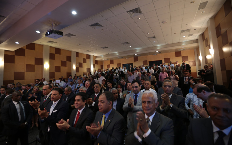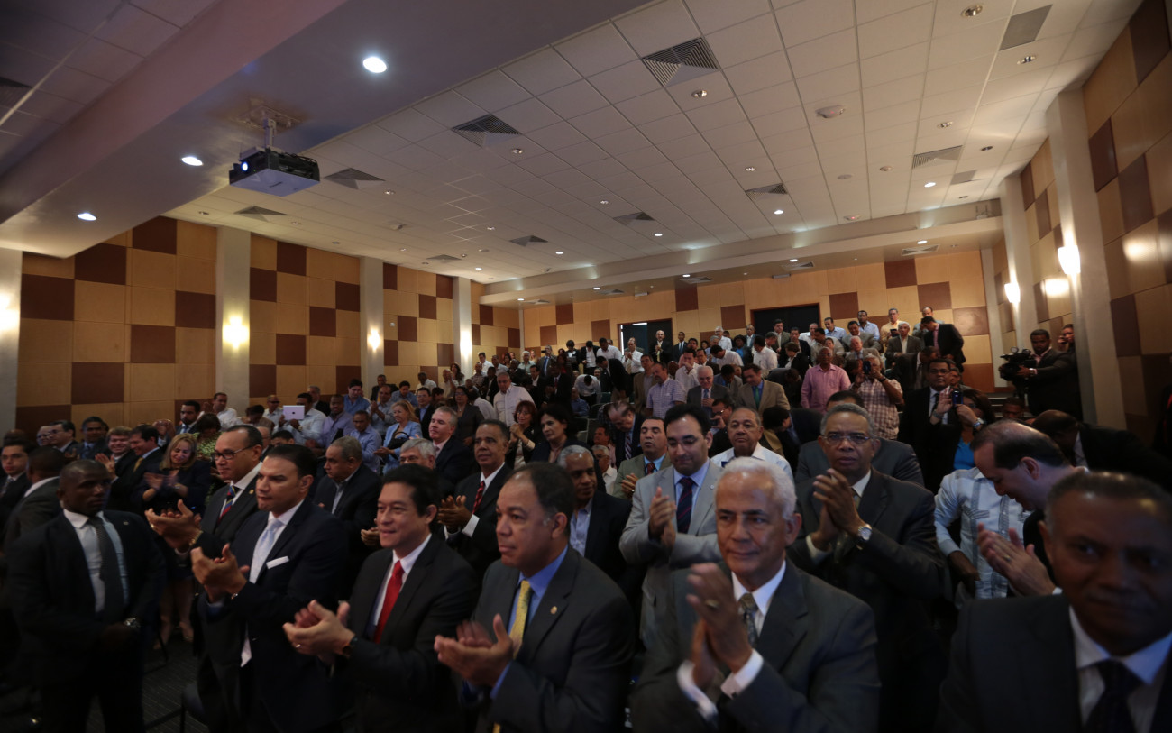 Vista de los adquirientes del Distrito Industrial Santo Domingo Oeste (DISDO), durante un encuentro celebrado con el presidente Danilo Medina en el Centro de Exportación e Inversión de la República Dominicana (CEI-RD).