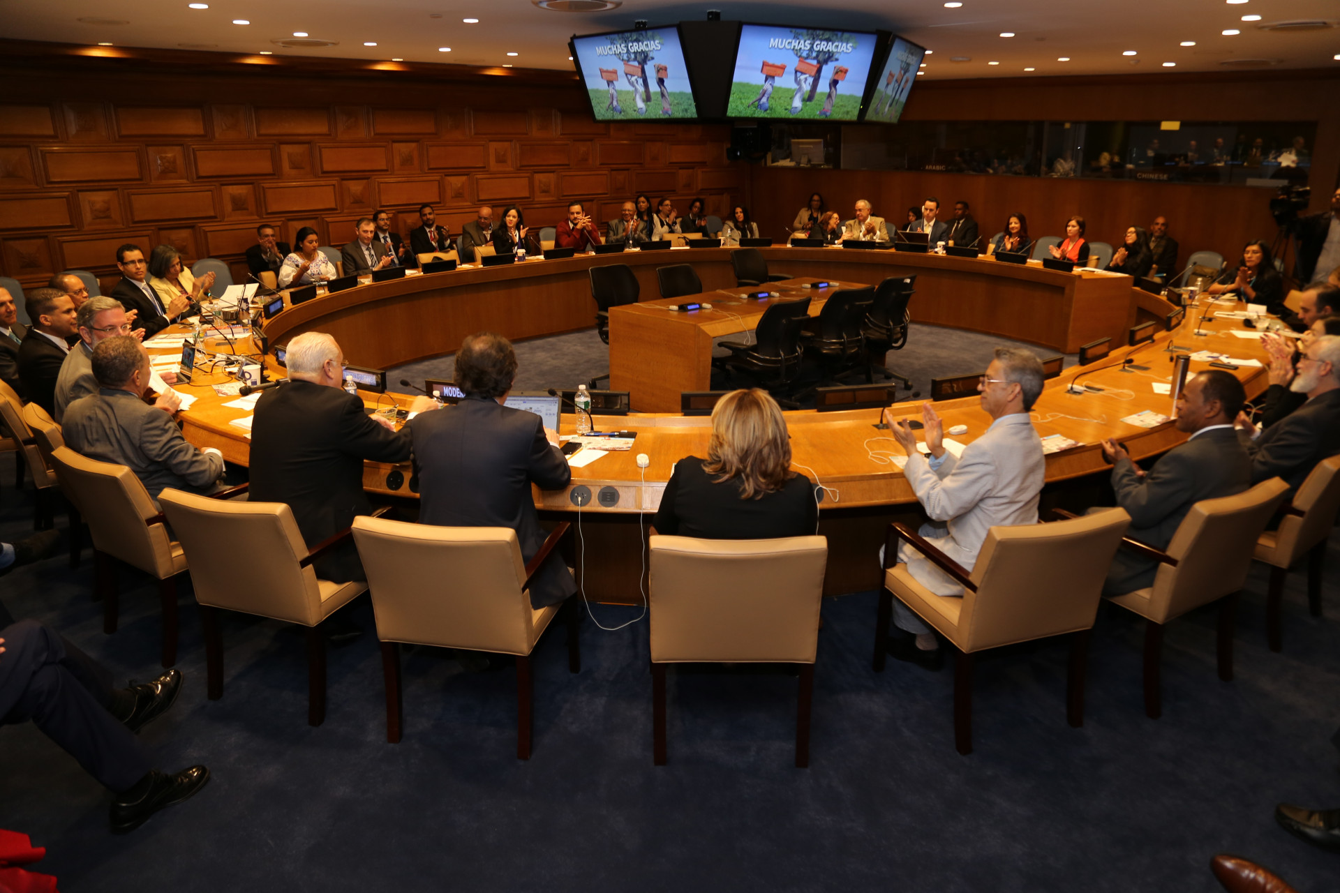 Delegación de la República Dominicana en la presentación realizada por el portavoz del Gobierno, Roberto Rodríguez Marchena, ante representantes de las Naciones Unidas (ONU), con la exposición titulada: “Gobernar empieza el Domingo. Las Visitas Sorpresa del presidente Danilo Medina”.