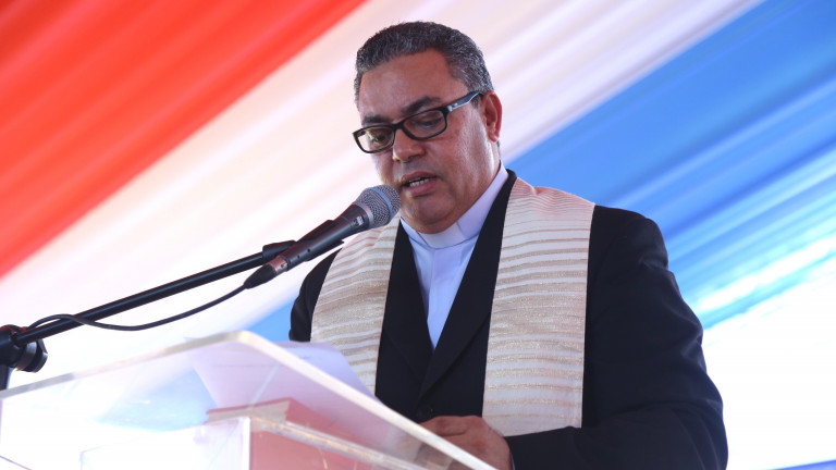 Tras bendecir el centro educativo inaugurado, el padre Amable Antonio Fernández, de la parroquia Santísima Trinidad, felicitó al Gobierno por esta obra tan importante para el desarrollo intelectual de la juventud y el progreso de las comunidades.