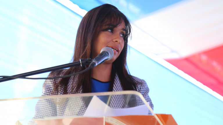En representación del ministro de Obras Públicas habló la viceministra Claudia Franchesca De los Santos, quien refirió que las nuevas escuelas buscan formar mujeres y hombres libres, brindando a los niños y niñas oportunidades ciertas para avanzar por los senderos del progreso, de la paz y de la dignidad.
