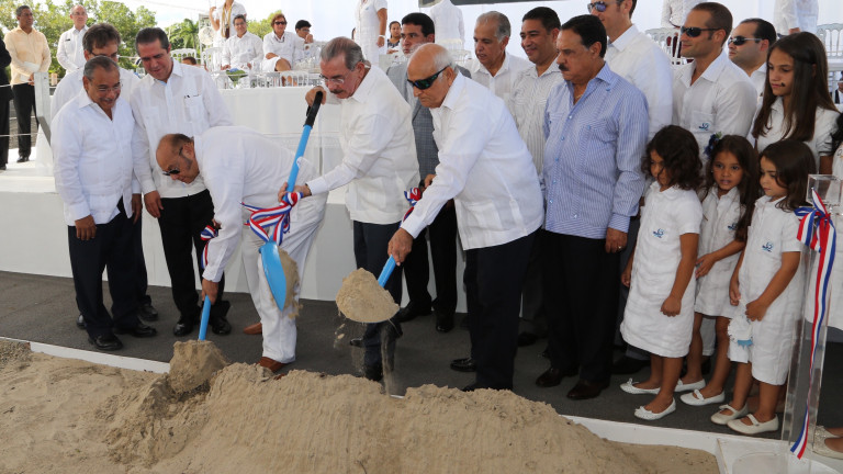 Luego del corte de cinta para inaugurar la primera etapa, el presidente Danilo Medina dio el primer palazo para dejar iniciados los trabajos de la segunda etapa de Blue JackTar Condos en Playa Dorada, Puerto Plata.