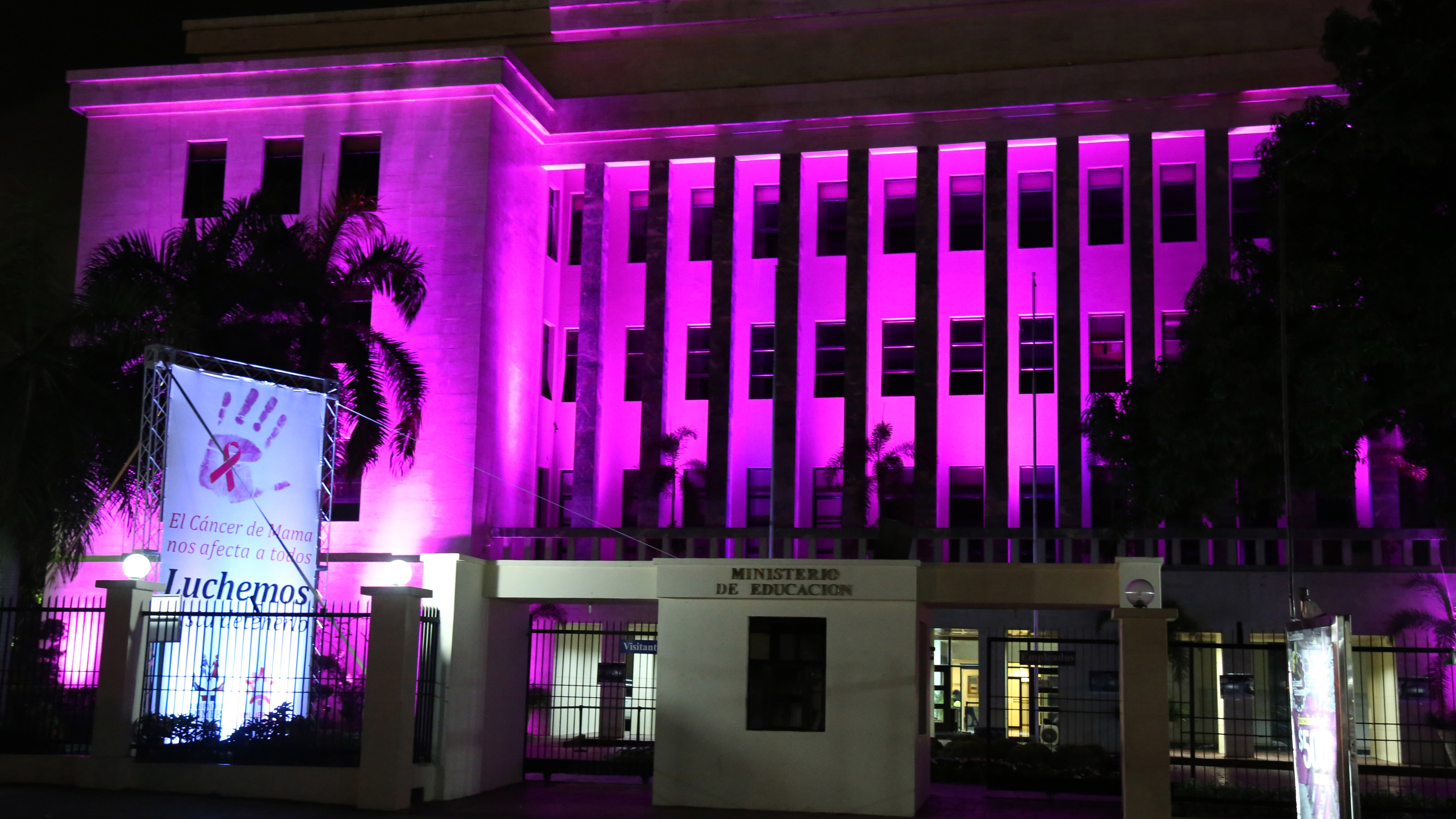 Diversas instituciones públicas y privadas iluminadas de color rosado se han sumado a la campaña de concienciación y prevención del cáncer de mama, que bajo el lema “Anímate a Cuidarte”, auspicia el Despacho de la Primera Dama.
