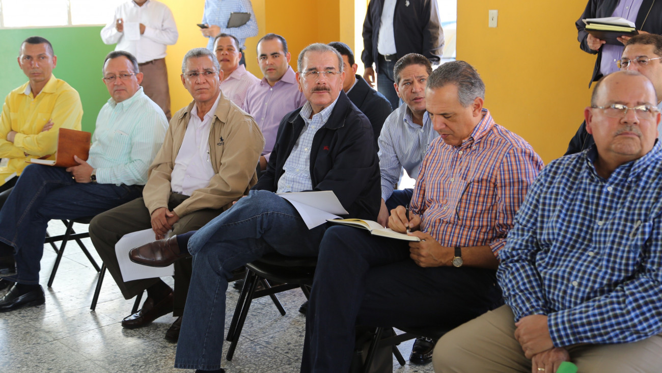 El mandatario estuvo acompañado por los ministros José Ramón Peralta y Ángel Estévez, Administrativo de la Presidencia y de Agricultura, respectivamente; Carlos Segura Fóster, administrador del Banco Agrícola, entre otros.