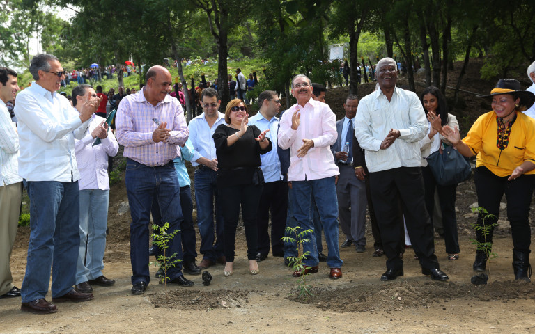 El presidente Danilo Medina, junto a funcionarios del gobierno y moradores de la zona, al inaugurar el vivero Los Gajitos, de la provincia San Juan, con motivo de conmemorarse el Día Mundial del Medio Ambiente. 5 de junio de 2013. EM