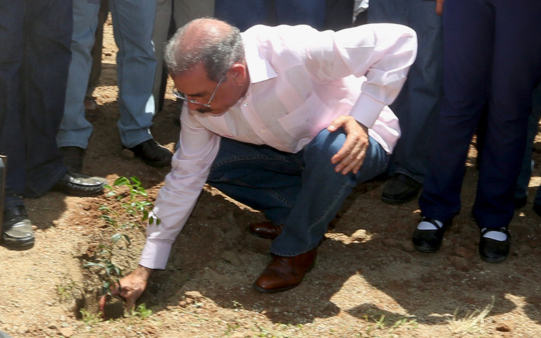 El presidente Danilo Medina sembró una matas de caoba nativa, como símbolos de los esfuerzos de reforestación entre los dos países.