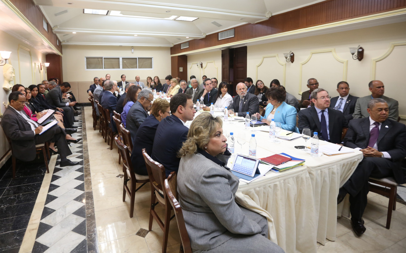 Vista parcial del encuentro encabezado por el ministro de la Presidencia Gustavo Montalvo, con representantes del sector manufacturero dominicano.