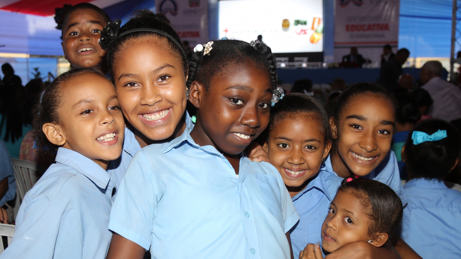 Niños y niñas de El Libertador de Herrera, con la alegría reflejada en sus rostros, celebran porque recibieron del presidente Danilo Medina la Escuela Básica Eugenio María de Hostos, en la que en lo adelante tendrán la oportunidad de recibir una educación integral y de calidad, así como alimentos nutritivos y balanceados, lo que les permitirá construir un mejor futuro. Foto: Ángel Álvarez Rodríguez/Presidencia República Dominicana Nota de prensa: presidencia.gob.do/noticias/se-fortalece-revolucion-educa...