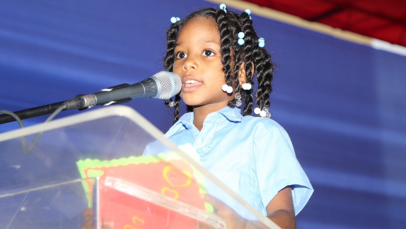 La pequeñita Arnelis Xyomairi Saviñón habló en nombre de sus compañeros de aula, precisando que con esta escuela de básica de la Jornada Escolar Extendida, los estudiantes de El Libertador de Herrera aprovecharán más los aprendizajes.