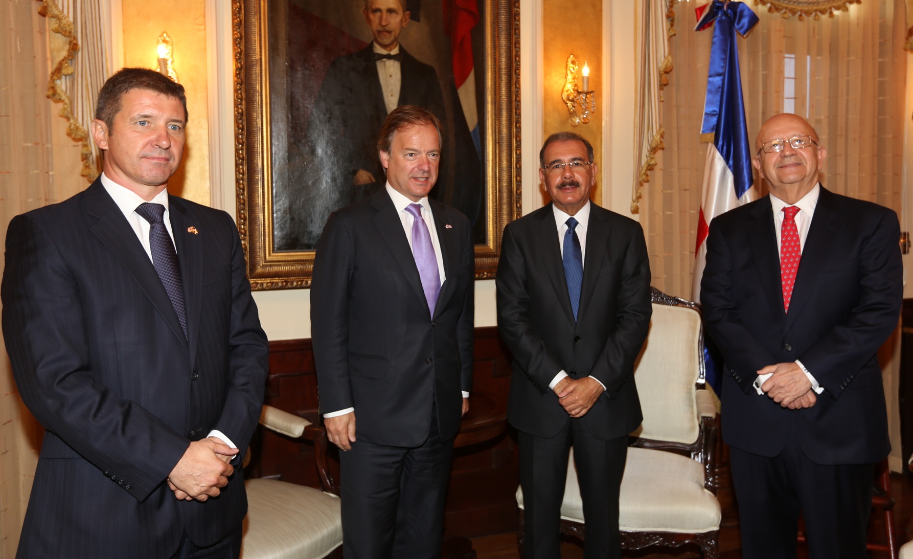 Visita del señor Hugo Swire, ministro de Relaciones Exteriores de Gran Bretaña para América Latina y el Caribe; al presidente de la República, Danilo Medina, en su despacho del Palacio Presidencial. Acompañan al ministro de Gran Bretaña, los señores Steven Fisher, embajador de esa nación en el país, el embajador dominicano acreditado en el Reino Unido, Federico Cuello y el ministro de Relaciones Exteriores, Carlos Morales Troncoso, quien lo presenta al Mandatario.