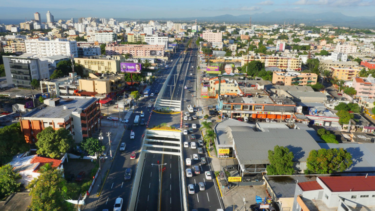 Vista aérea del paso a desnivel de la avenida 27 de Febrero con Privada, inaugurado hoy en acto encabezado por el presidente Danilo Medina.