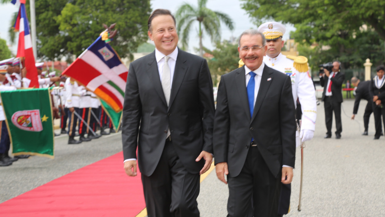 El presidente de la República, Danilo Medina y el presidente de Panamá, Juan Carlos Varela, quien recibió los honores propios de su investidura.