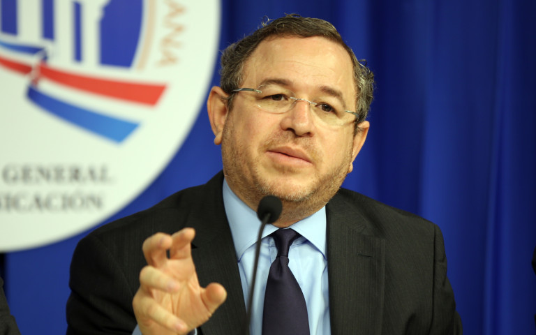 El director general de Impuestos Internos, Guarocuya Félix, al hablar sobre los beneficios de la nueva medida, durante rueda de prensa en el Palacio Nacional.