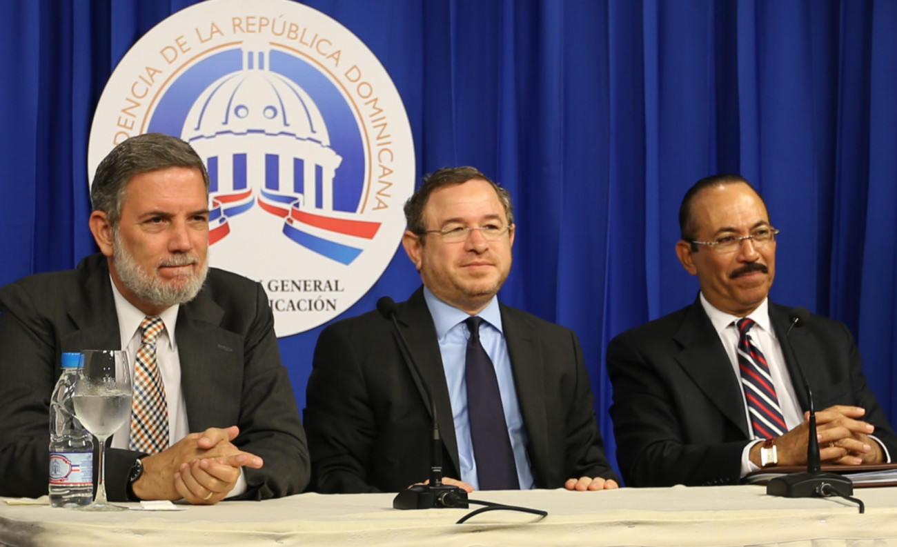 Encuentro del ministro de Agricultura, Luis Ramón Rodríguez, y el director general de Impuestos Internos (DGII), Guarocuya Félix, en el que destacaron el esfuerzo que realiza el Gobierno para apoyar a los sectores agrícolas y pecuarios. Figura también el director general de Comunicaciones de la Presidencia, señor Roberto Rodríguez Marchena, quien fungió como moderador.