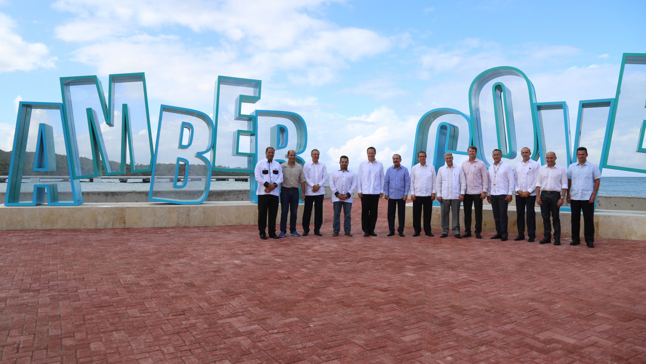 Durante su visita a Amber Cove, los gobernantes recibieron explicaciones de las operaciones del puerto de parte de los ejecutivos de la empresa de cruceros Carnival Corporation, José Negrón director de Operaciones; Mouen Al Mawla, gerente del puerto y Fabio Valenzuela.