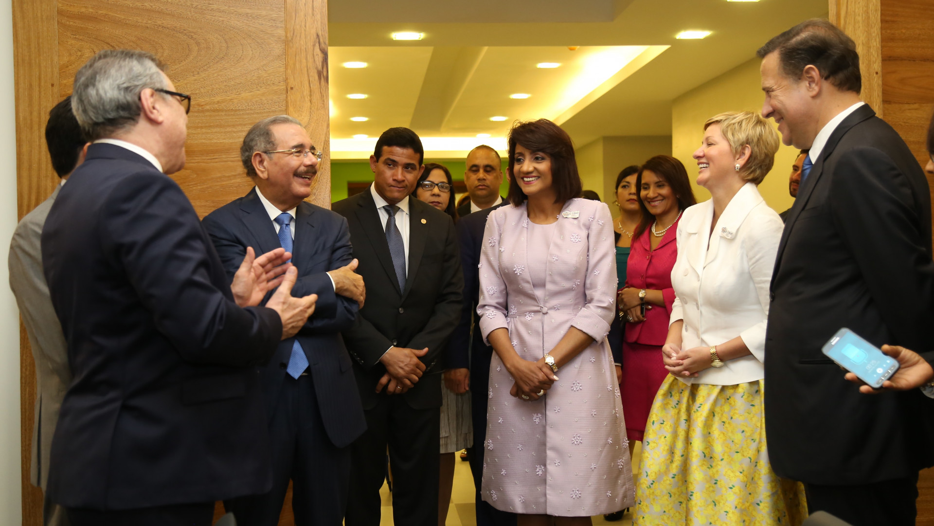 Luego del desvelamiento de una tarja por parte de los presidentes Danilo Medina y Juan Carlos Verla, ambos mandatarios acompañados de sus esposas y de funcionarios, realizaron un recorrido por la nueva instalación del CAID-Santiago.