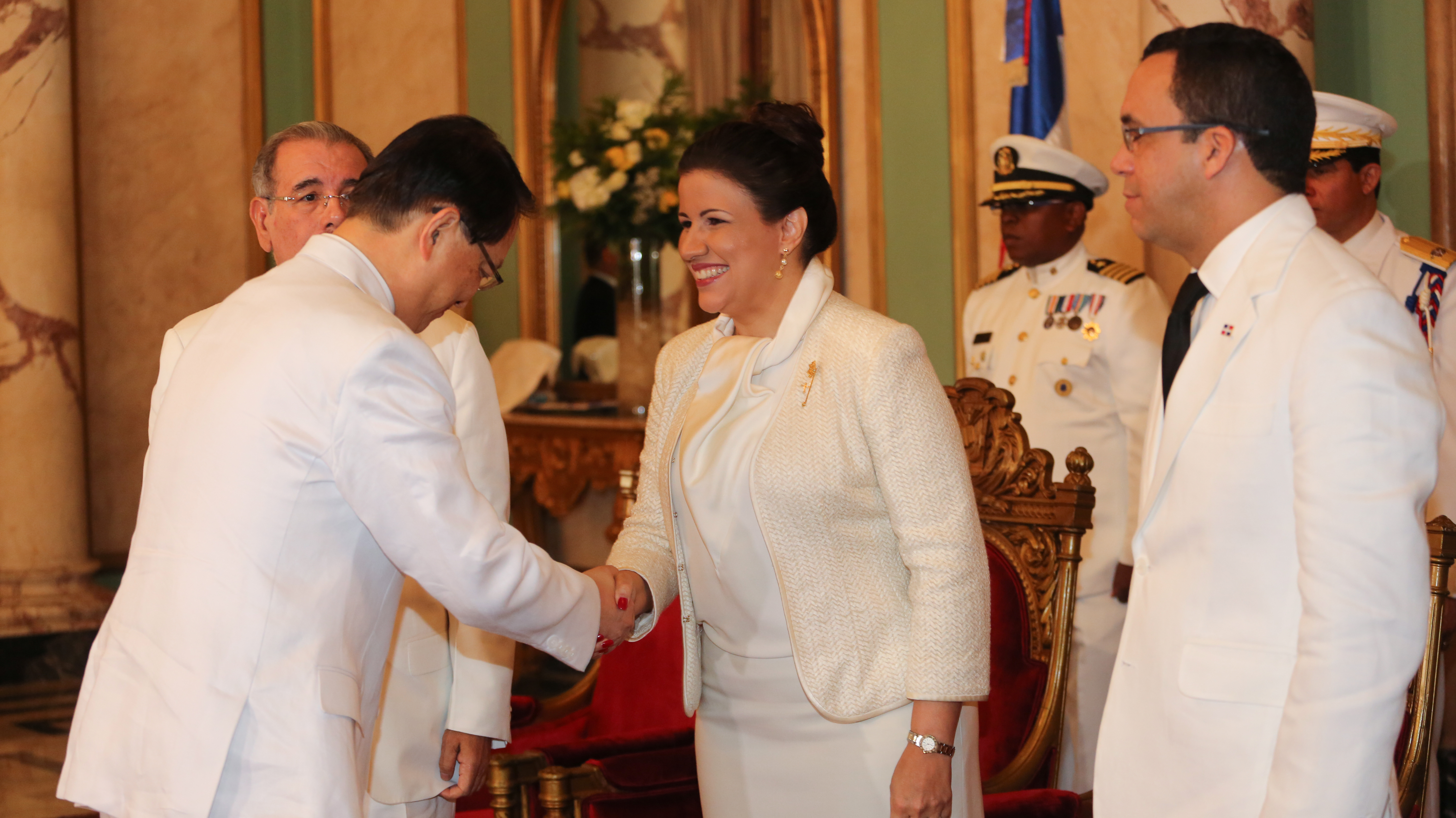 En el acto solemne acompañaron al Gobernante la vicepresidente Margarita Cedeño; el ministro de Relaciones Exteriores; así como el director de Ceremonial de Estado y Protocolo, Pedro Gómez y el subdirector de Ceremonial y Protocolo del Poder Ejecutivo, Juan Francisco Rodríguez.