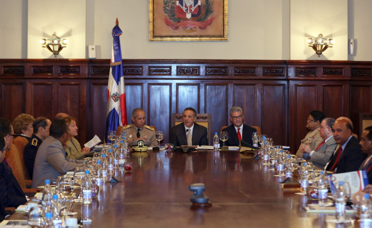 Sesión de trabajo de los integrantes del Consejo Nacional de Prevención, Mitigación y Respuesta ante desastres, reunidos en el Palacio Presidencial para supervisar los planes de contingencia ante la temporada ciclónica.