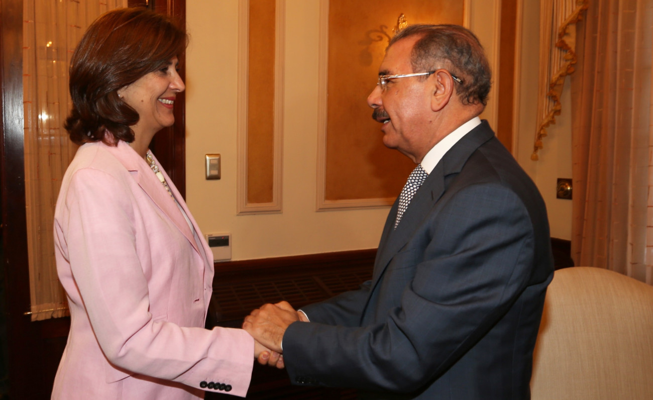 El presidente Danilo Medina y canciller de Colombia, María Ángela Holguín, durante visita oficial, efectuada en el Palacio Presidencial.