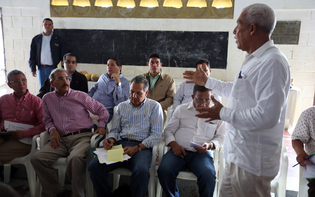 El presidente de la Republica Danilo Medina Sánchez, reunido con productores agropecuarios y pescadores de Yaguate, Palenque y Semana Santa, de la provincia San Cristóbal. El Mandatario los exhortó a organizarse para que la ayuda del gobierno les llegue con mayor efectividad.