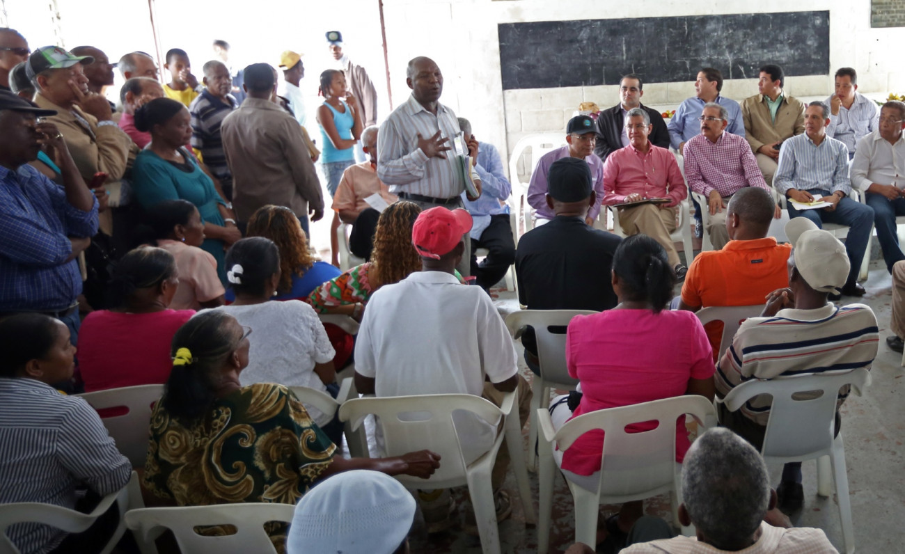 El presidente de la República Danilo Medina Sánchez, reunido con mujeres, productores agropecuarios y pescadores de Yaguate, Palenque y Semana Santa, de la provincia San Cristóbal. El Mandatario los exhortó a organizarse para que la ayuda del gobierno les llegue con mayor efectividad.