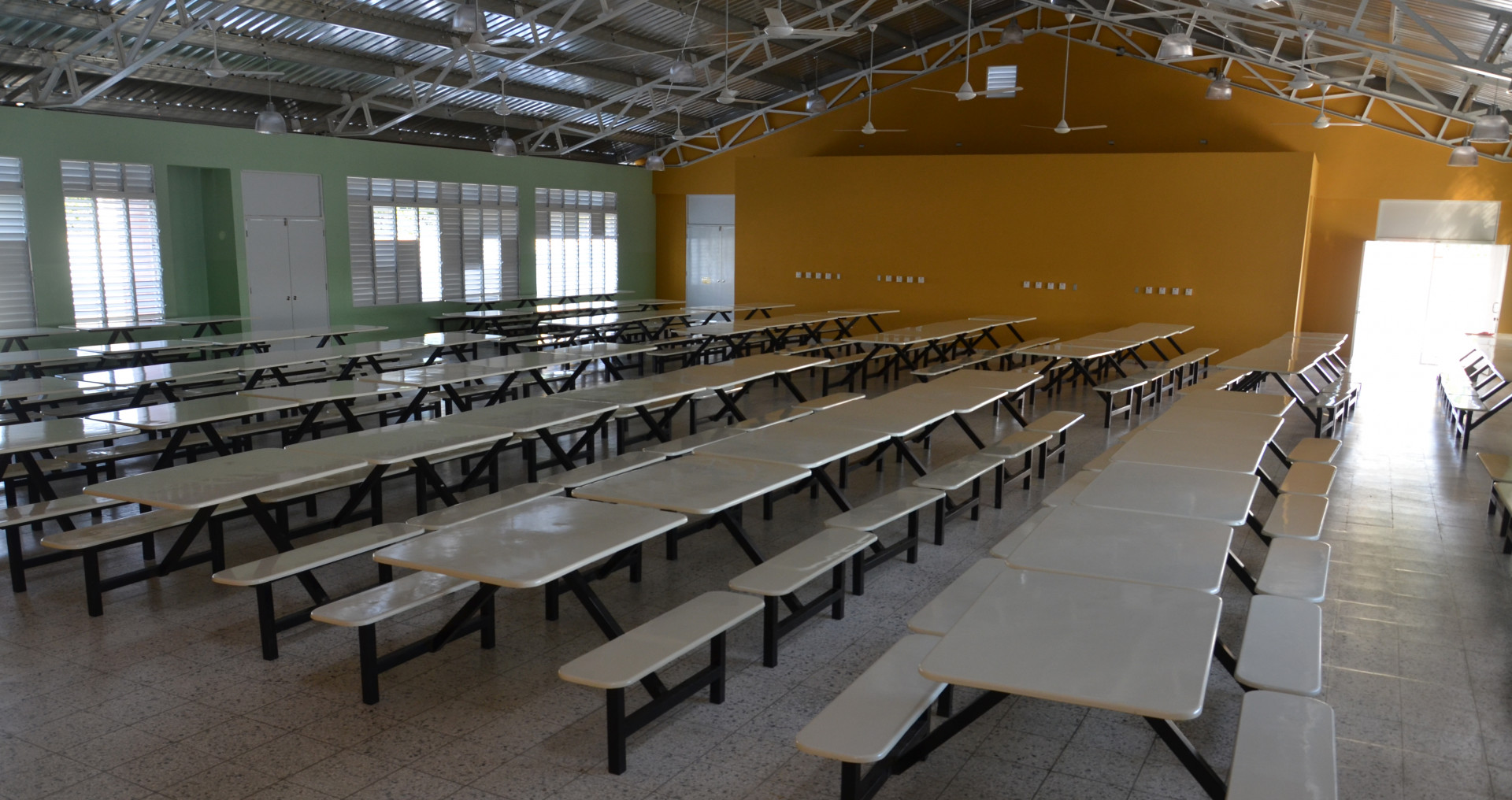Área del comedor del nuevo Liceo Altagracia Lucas de García, que contará con Programa de Jornada Escolar Extendida, en el sector Moscú, de San Cristóbal,