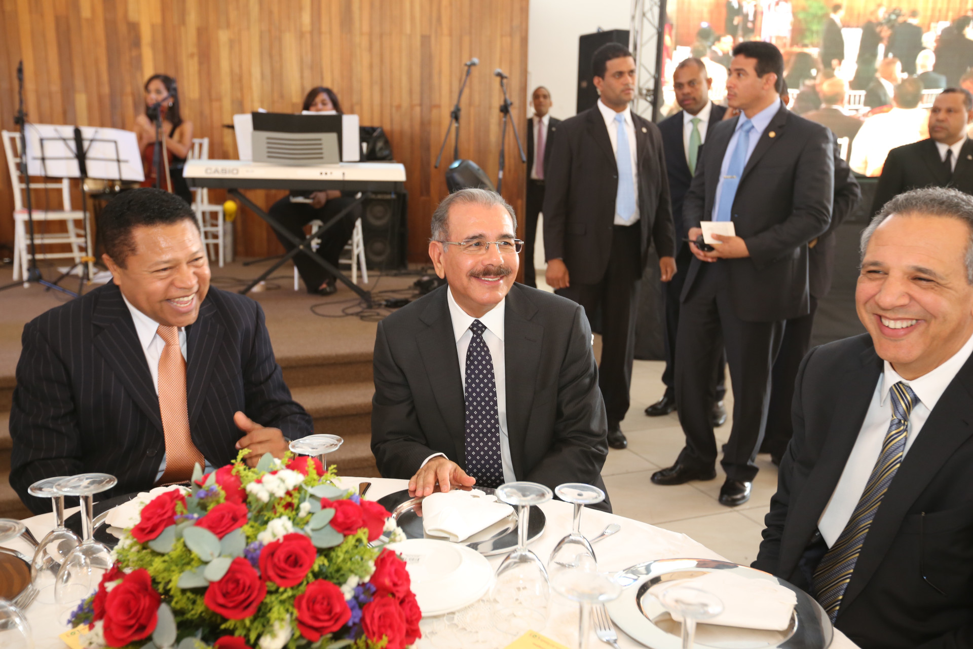El presidente de la República, Danilo Medina, junto a Ramón Rodríguez,administrador general de los Comedores Económicos y el ministros Administrativo de la Presidencia, José Ramón Peralta, durante acto de celebración por el 71 Aniversario de los Comedores Económicos, efectuado en el Salón Restauración del Club de las Fuerzas Armadas.