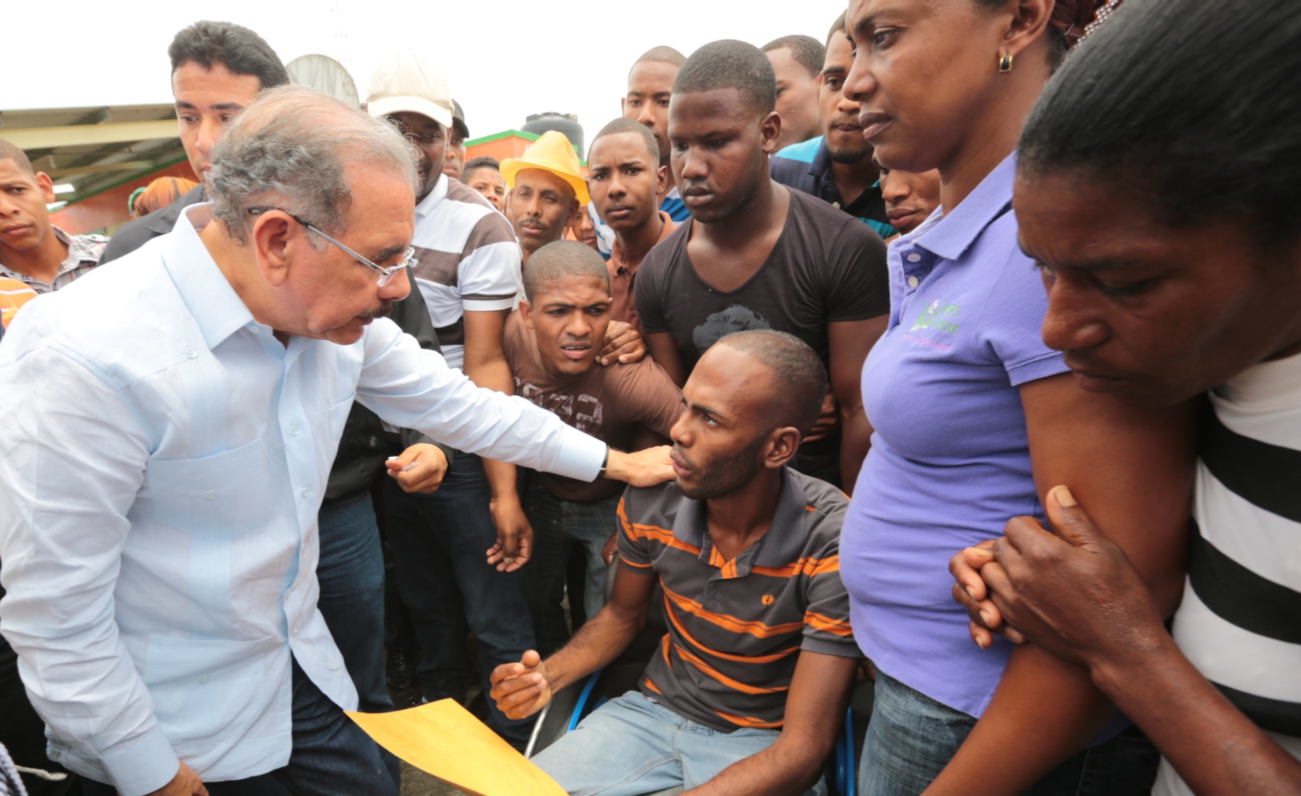 El presidente Danilo Medina conversa con moradores de la zona, durante su visita sorpresa de este domingo, por la provincia de San Juan.