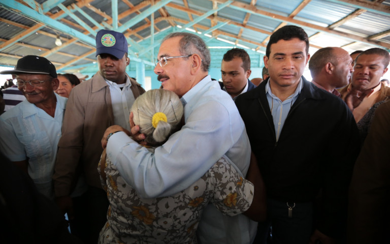 El presidente Danilo Medina, saluda moradores de la zona, en su visita sorpresa de este domingo a la provincia de San Juan.