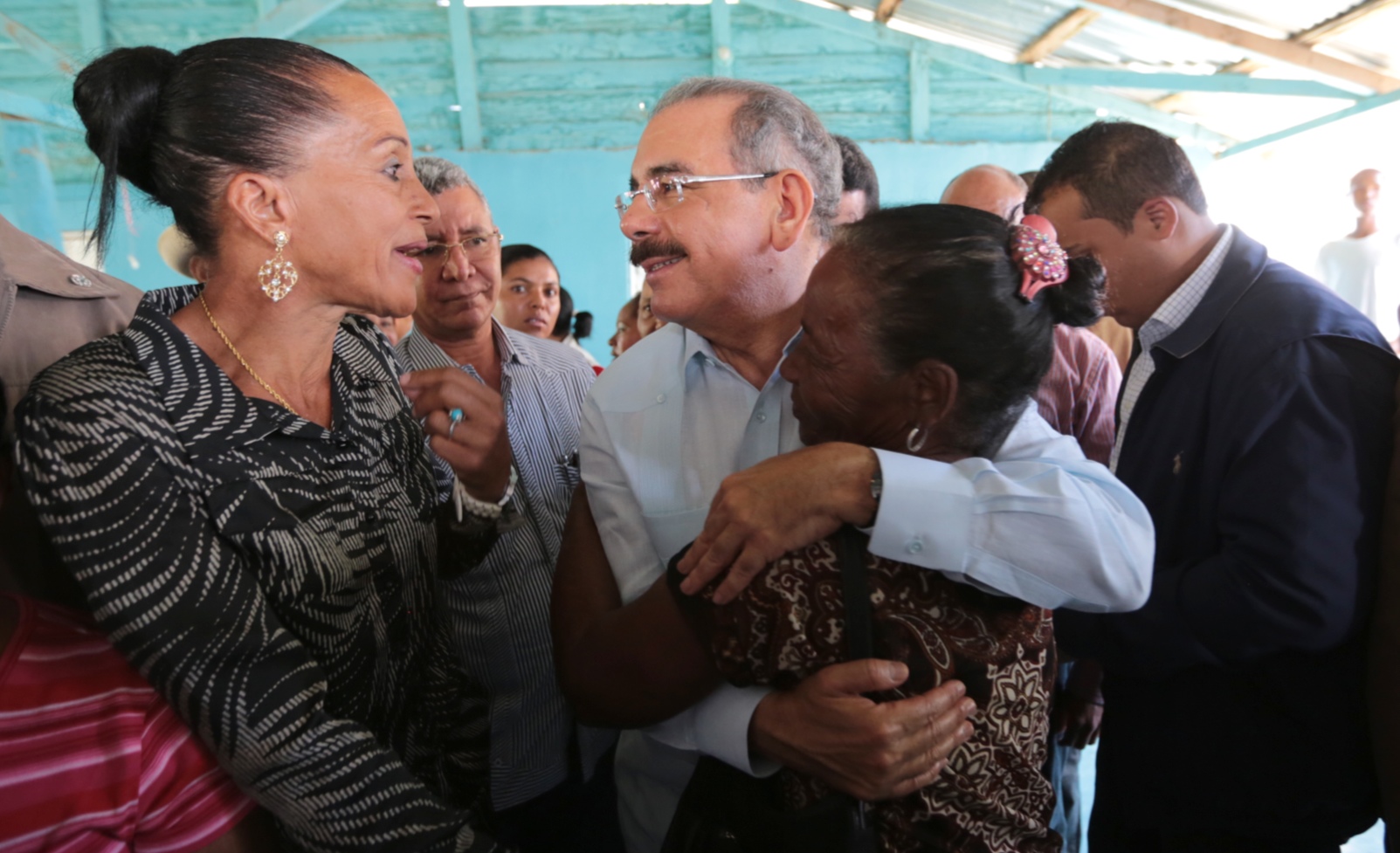 El presidente Danilo Medina, saluda moradores de la zona, en su visita sorpresa de este domingo a la provincia de San Juan.