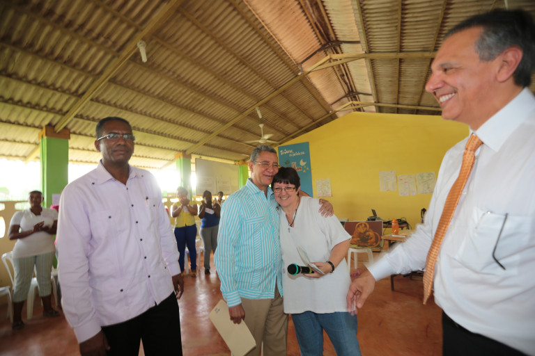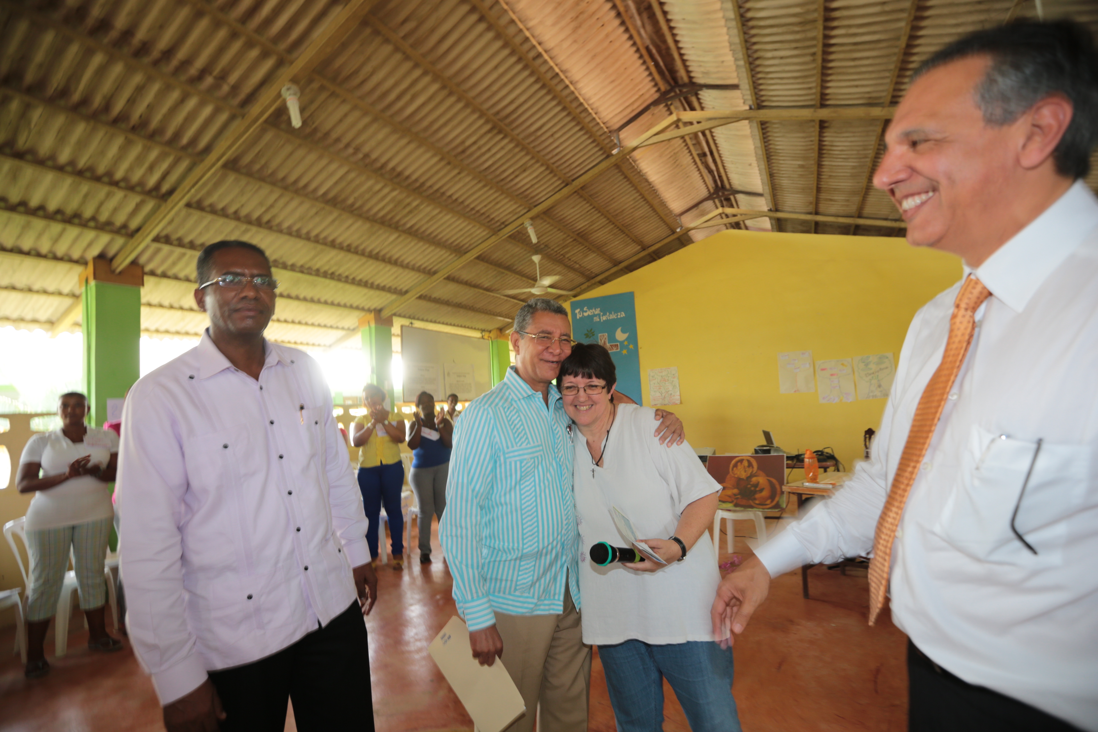 Ministro Administrativo de la Presidencia, José Ramón Peralta, junto a directivos del Programa Comunitario “Futuro Vivo”, en la comunidad de Guerra, en Santo Domingo Este.