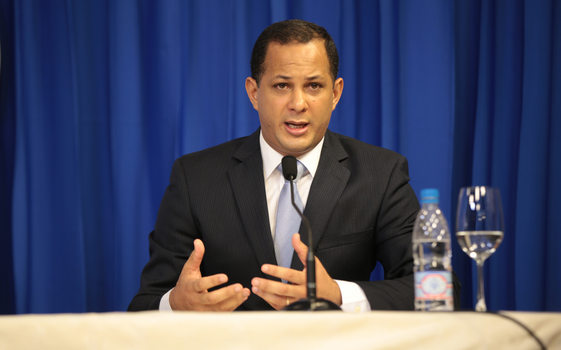 Jorge Minaya, ministro de la Juventud, y quien en esta ocasión fue el invitado al Encuentro Semanal con los medios, que se realiza cada lunes en el Salón Orlando Martínez, del Palacio Nacional.