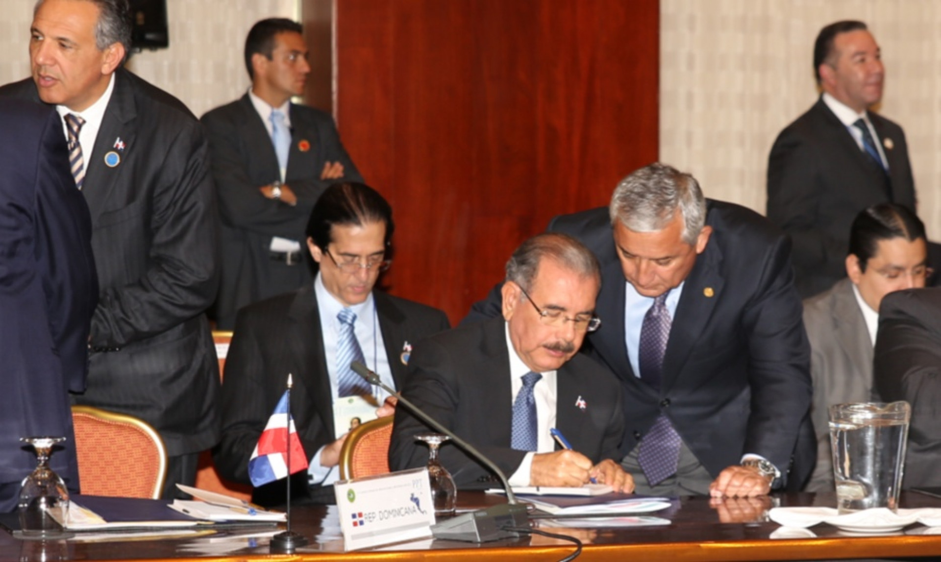 Presidente Medina, junto a comitiva dominicana y Otto Pérez Molina, presidente de Guatemala, durante reuniones de trabajos de la XLI Cumbre SICA, celebrada en San José, Costa Rica.