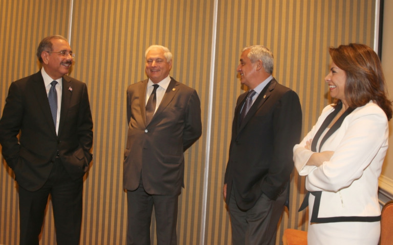 El presidente Danilo Medina, comparte con sus homólogos, Ricardo Alberto Martinelli Berrocal, presidente de Panamá, Otto Pérez Molina, presidente de Guatemala y la anfitriona, señora Laura Chinchilla, presidenta de Costa Rica, durante su encuentro en la XLI Cumbre del SICA.