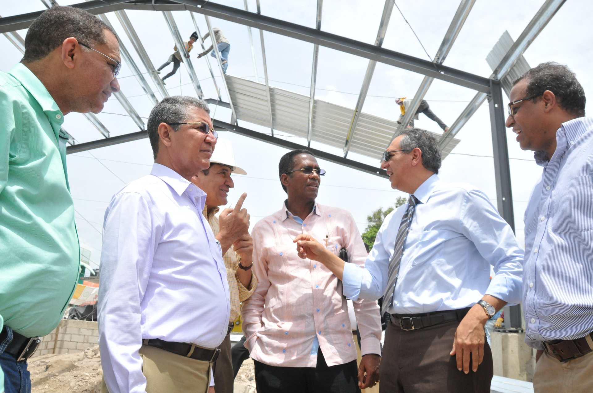 El ministro de la Presidencia, José Ramón Peralta, conversa con el ingeniero Mario Almánzar, encargado de los trabajos de construcción del mercado de Azua, a fin de agilizar la obra, en favor de los moradores de la zona.